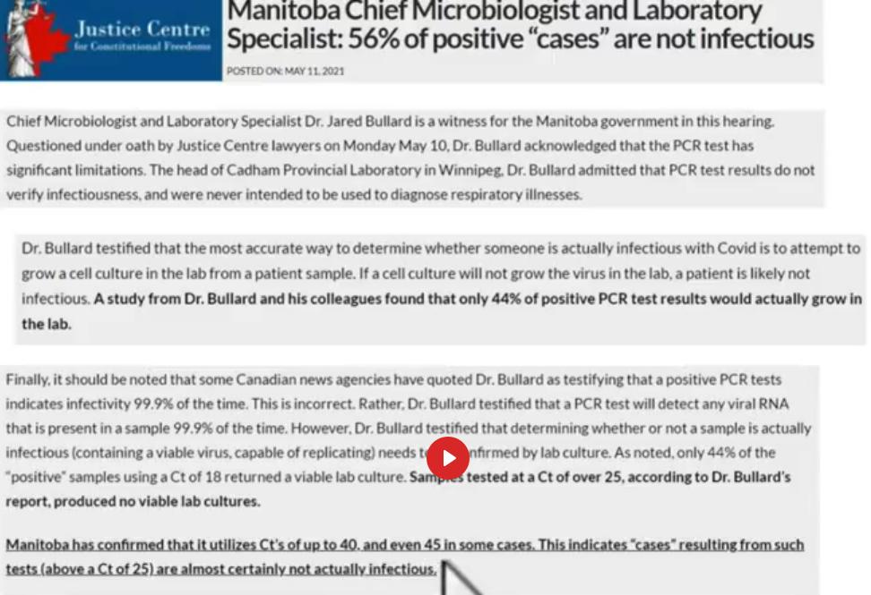 For your convenience I have pulled up a screenshot from this video so you can see the courtroom evidence concerning the PCR test - view here - worth reading carefully!