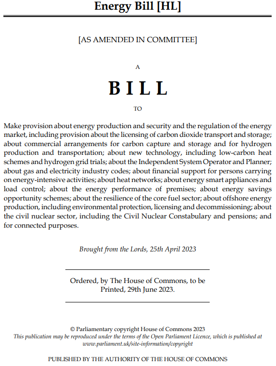 No, "our" Energy Bill - Bill 340 as currently wending its way through "our" UK Parliament.