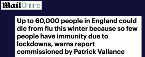 Yes you've guessed it - we must now be very afraid of the . . . flu. Yes, that flu, that was so rudely pushed aside by the Covid statistics of the last 18 months.